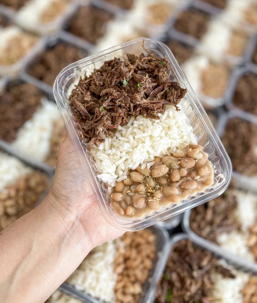 Arroz branco, feijão carioca e carne desfiada (sem lactose)