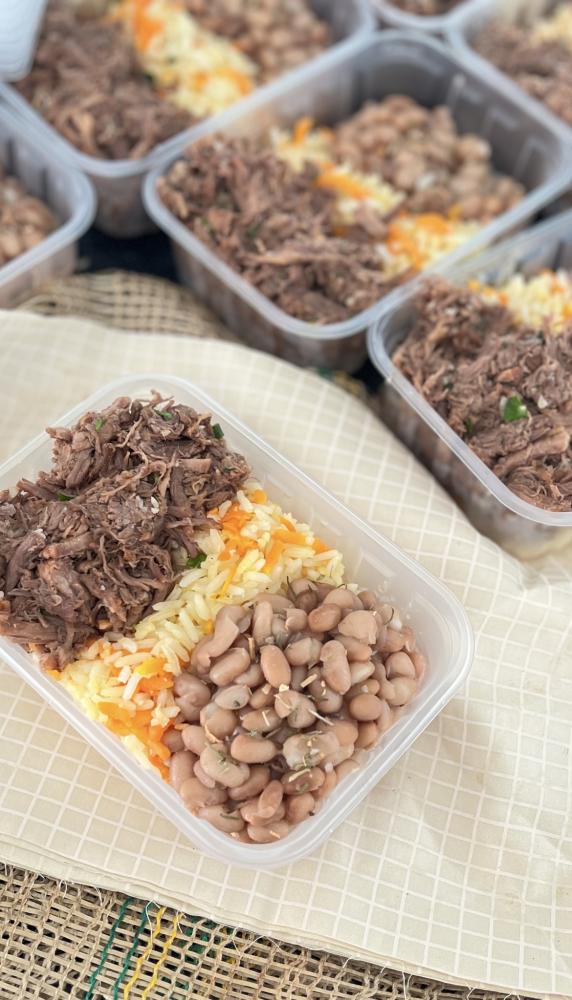 Arroz branco com cenoura, feijão carioca e carne desfiada (sem lactose)
